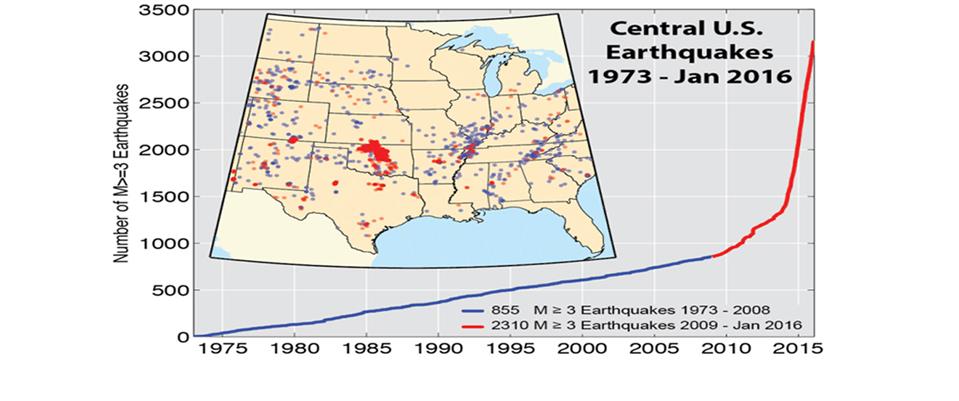 Hydraulic fracturing induced earthquakes though rare are documented in Oklahoma, Ohio, Pennsylvania and Canada. Perhaps a handful of earthquakes caused by hydraulic fracturing are documented in Oklahoma, whereas the number of quakes attributed to wastewater injection is in the hundreds. However, earthquakes recently occurred in an area near hydraulically fractured wells but more than 20 miles from any high-volume wastewater injection wells. Given that fluids or pressure pulses — from injection or hydraulic fracturing — can rapidly travel long distances additional studies are needed to clarify the source of the seismicity.