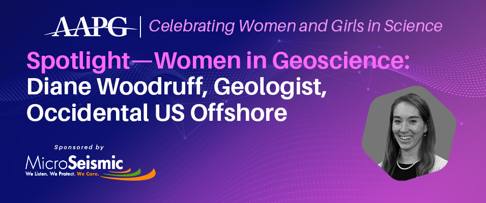 Diane Woodruff is a geologist with Occidental Offshore U.S., where she works on Gulf of Mexico development assets for various fields/prospects around Southeast Green Canyon. She previously spent roughly five years working for Anadarko Petroleum Corp.,