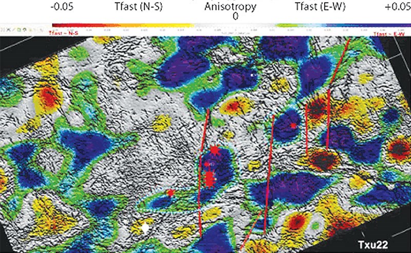 As described last month, fracture orientation was determined by deriving the azimuths of Vfast from shear-wave splitting analyses performed in a layered-Earth approach.