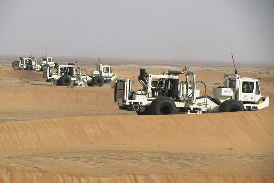 The 15 vibrators on site were separated by a distance of as much as 24 kilometers. While one was shaking, another was shaking 12 kilometers away and a third one 24 kilometers distant – the distance allowed for the data recorded from each vibrator not to interfere with each record.