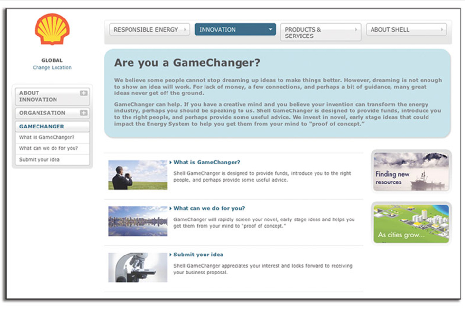 Like many other large companies, Shell has an online resource where people can submit innovative ideas.