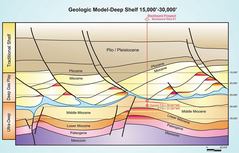 “The ultra-deep play at Blackbeard is to test to see if the same sands exist even deeper than our original deeper gas sands concept as you go out into the deeper part of the shelf,” he said.