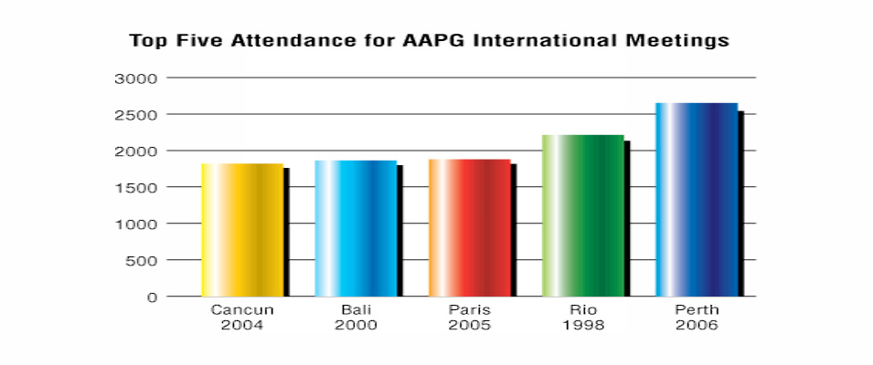 The 2006 AAPG International Conference and Exhibition, even though it was held at the “remote” venue of Perth, proved to be a record-setting meeting. With a final official count of 2,626 registrants, it became the largest international meeting in AAPG history.