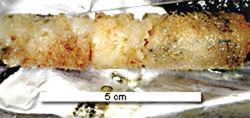 Core recovered from the Johnson Sealink cruise in the Gulf of Mexico in July 2001.Photo courtesy Ian McDonald, Texas A&M