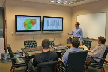 Figure 3 - Geological Work room, with two 60-in. plasmas screens on a Geological Work Station