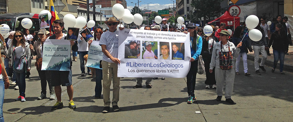 Geologists across Colombia responded to the February kidnappings by organizing demonstrations in Bogotá, Medellin, Sogamoso and Manizales – cities whose universities have strong geoscience programs and AAPG chapters.