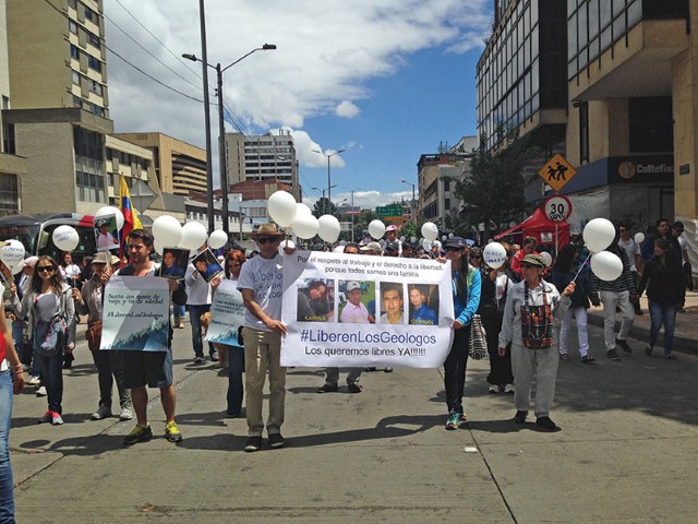 Checa led fellow geologists in a “March for Life” held in Bogotá March 8, one of multiple events calling for the kidnapped geologists’ release.