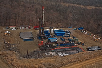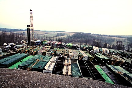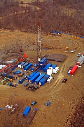 Several aerial views of a frac job at one of Range shale plays in Pennsylvania -- these are among the first large, slick water fracs applied to shales in the Appalachian Basin. Resources Devonian . Photos courtesy of Range Resources; map data courtesy of Chesapeake Energy.