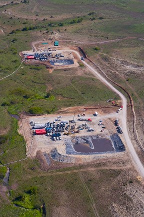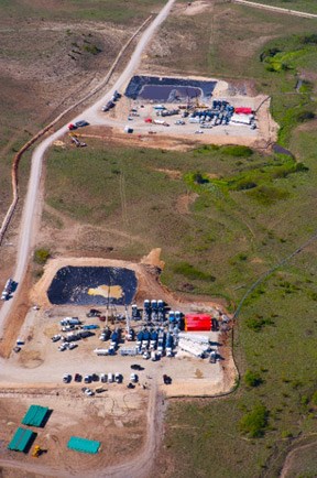 Going strong: A Barnett Shale simul-frac site in north Texas.Photos courtesy of Range Resources