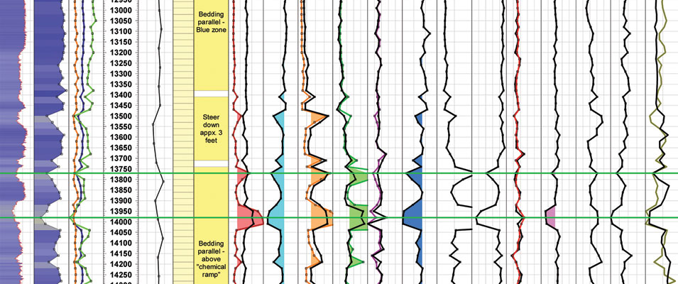 Grimes is quick to note that many laterals are pretty much homogeneous, with the targeted zone emitting essentially the same geochemical signal throughout.