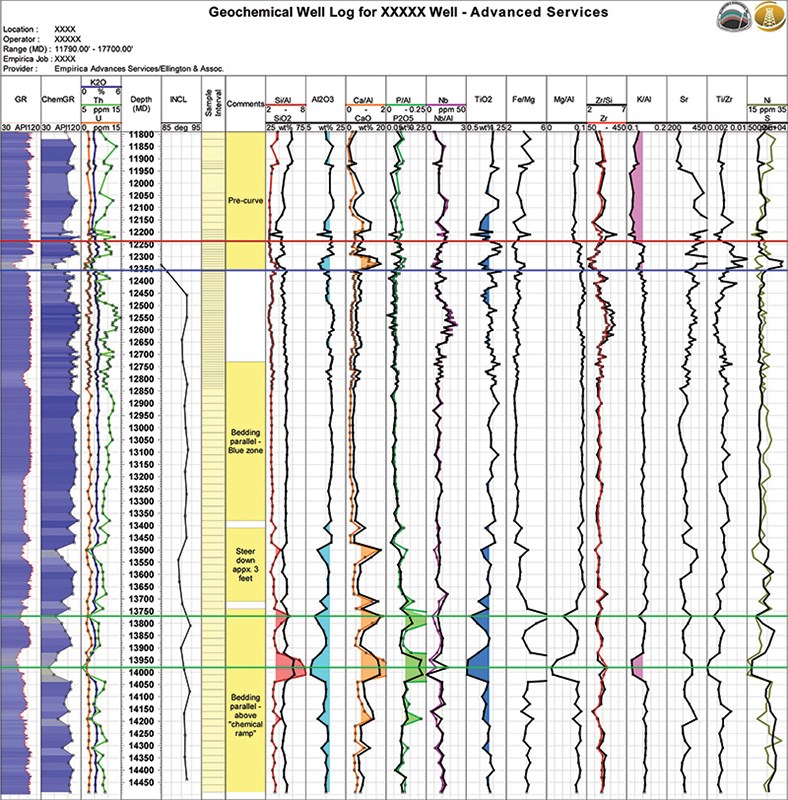 “In geosteering, we prefer to have data from a pilot well for comparison so we see things in stratigraphic order and know that from this different horizon we’re getting this sort of chemical signal and this kind of gamma ray signal,” Dill noted.