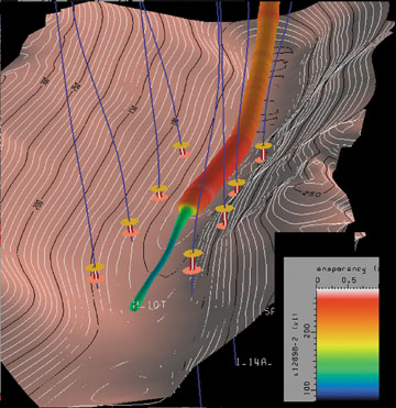 "This application is very quick, and shows the interrelationships of the various sands you are processing," Von Dohlen said. "The steam processing directly correlates with the high amplitudes on the horizons, so it's a conceptual leap to be able to see in 3-D that aspect of the processing sand that you are generally not able to see."