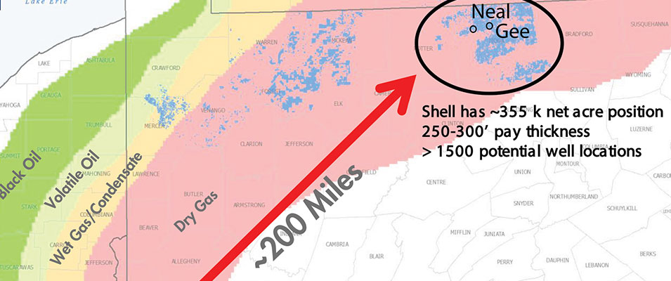 "Reservoir quality is exceptional over a net pay range of 250 to 500 feet, exhibiting well-connected kerogen porosity-permeability networks and high reservoir pressures," said Christopher Gonsalves, Tioga area manager at Shell Appalachia.