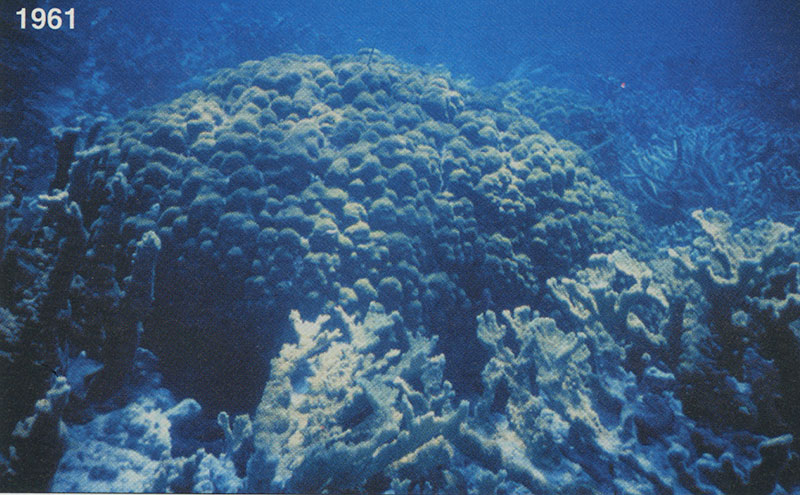 Black band disease on corals first appeared in the Caribbean in 1973, and from 1978 to 1983 several coral species suffered a period of die-off in Florida, Bermuda and the Caribbean.