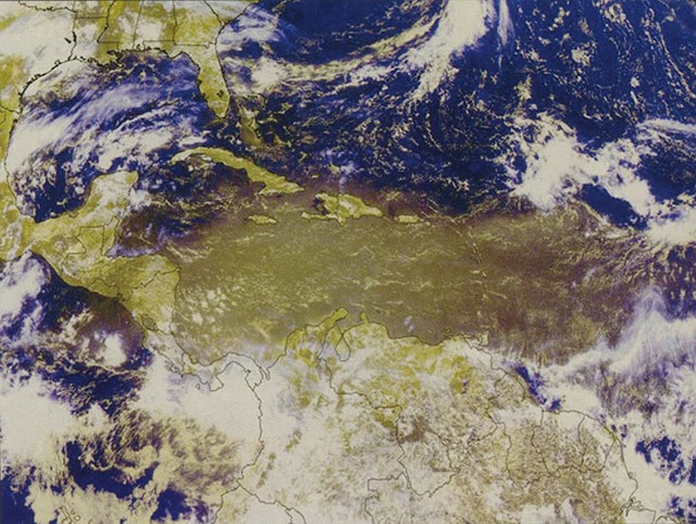This dust has been tracked from North Africa across the Atlantic with NASA Seawifs and TOMS satellite data, which is readily available on the Internet.