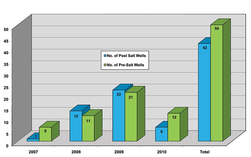 Brazil – 2007 to 2010 comparison of offshore post salt to pre-salt.