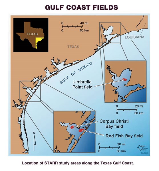 The STARR study areas along the Texas Gulf Coast. Graphics courtesy of Roger Tyler.