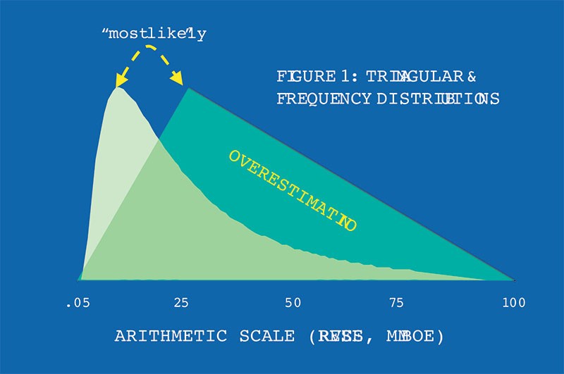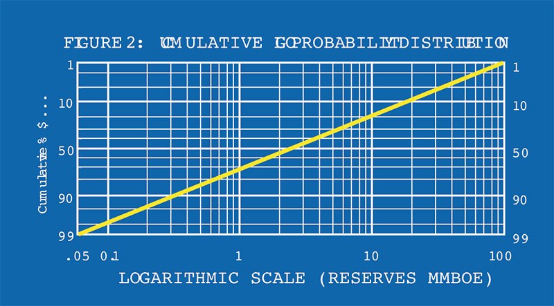 most explorationists use cumulative log probability distributions (Figure