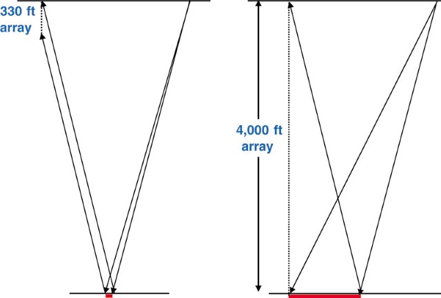 borehole array currently has a geophone spacing of 50 feet, but can be
