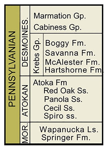 Major Pennsylvanian sand units of the Arkoma Basin.
