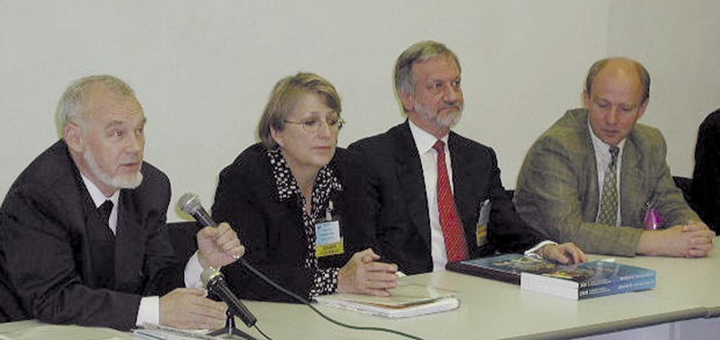 Meet the press: Miklail Belonin, Robbie Gries and Wofgang Scholinberger answer questions from the Russian media during a St. Petersburg press conference.