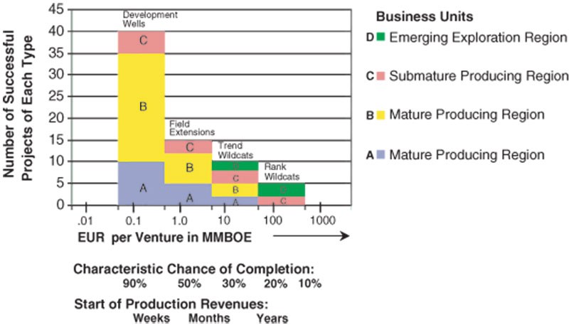 Figure 1: Differing E&P project mixes from different business units in a model corporate portfolio.