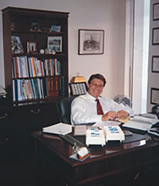 Epstein in happier days in his WTC office.