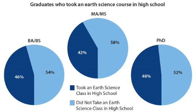 According to an API 2014 Status of Recent Geoscience Graduates report, 46 percent of those who graduated with an undergraduate geoscience degree took an earth science class in high school.
