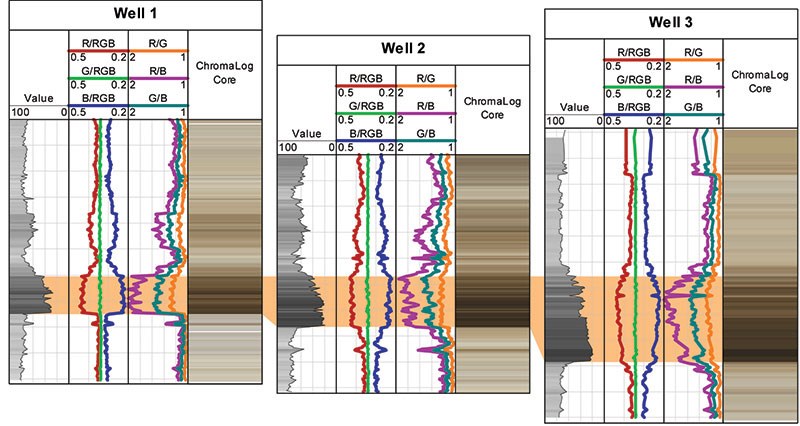 “A key element of ChromaStratigraphy is the graphic display of the reconstructed color from the measured samples, which produces a virtual core much like viewing a real core or outcrop,” he noted. “This enables immediate recognition of facies and formation changes, particularly in well documented settings.”