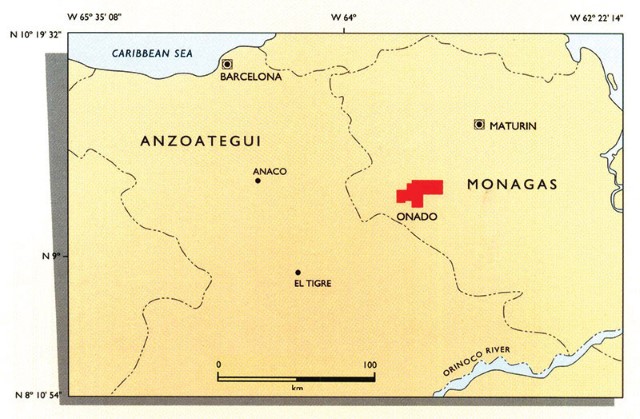 The Onado-50 Block lies 30 kilometers northeast of the Aguasay Field in the Maturin Sub-basin in Venezuela’s Eastern Basin. In 1971 the concession block was held 50/50 by Mobil Oil Company de Venezuela, the operator, and Texaco de Venezuela.