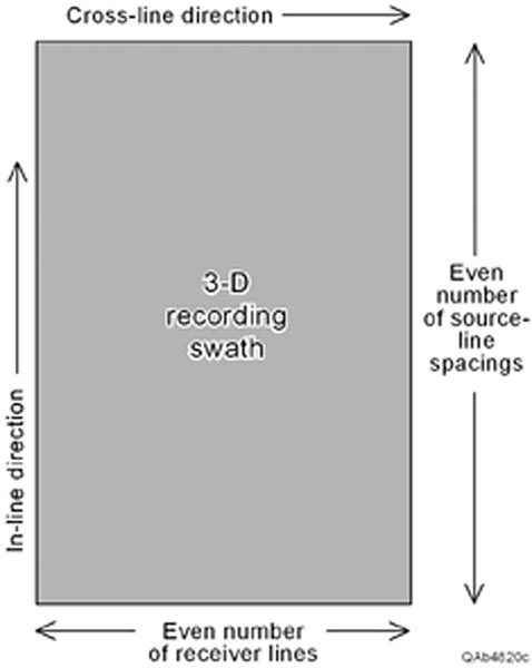 A recording swath should span an even number of receiver lines and an even number of source-line spacings (figure 1).