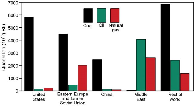 The United States possesses approximately 6,000 Quads (1015 British Thermal Units [Btu]) of coal resources, which greatly dwarf its 300-Quad resources of oil and gas (figure 1). At current rates of consumption, America has at least another 250 years of coal supply from its resource base of >1,700 billion short tons of measured, indicated and inferred resources (Energy Information Agency).