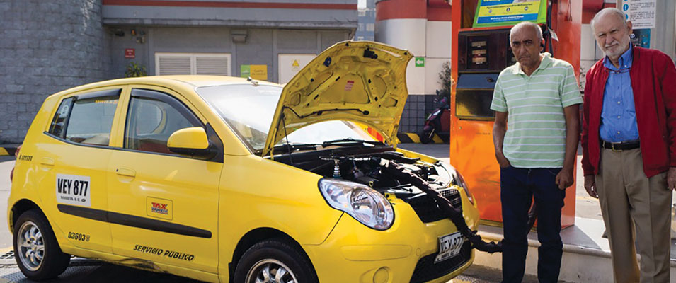 A total of more than 530,000 vehicles, 14 percent of the total vehicle fleet of the country, are powered by natural gas. Roughly 32 percent of the taxis in Bogotá run with natural gas, and service stations serving compressed natural gas (CNG) for vehicles are now a common sight throughout the country. In addition to environmental benefits, the use of CNG also brings considerable economic benefits. Mauricio Hernández, a Bogotá taxi driver, said he saves around 50 percent when using CNG as compared to the cost of gasoline.