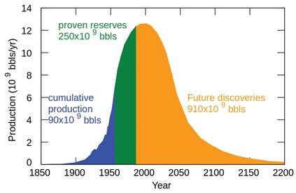 And U.S. oil production did reach a peak, a little later than the original Hubbert curve predicted. But with the discovery of North Slope oil in Alaska, production began to increase again. The domestic Peak Oil estimate was re-labeled as a Lower 48 prediction.