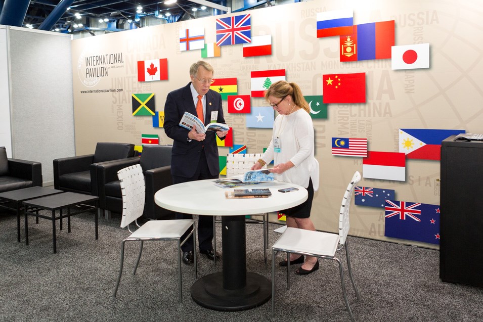 AAPG presidents’ job description includes following global industry activity, visiting different parts of the world and attending AAPG events. The International Pavilion, a staple at AAPG annual conventions and international conferences since 1994, enables them to accomplish these tasks simultaneously.