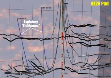 extended reach fishbones would be drilled to evaluate the overlying