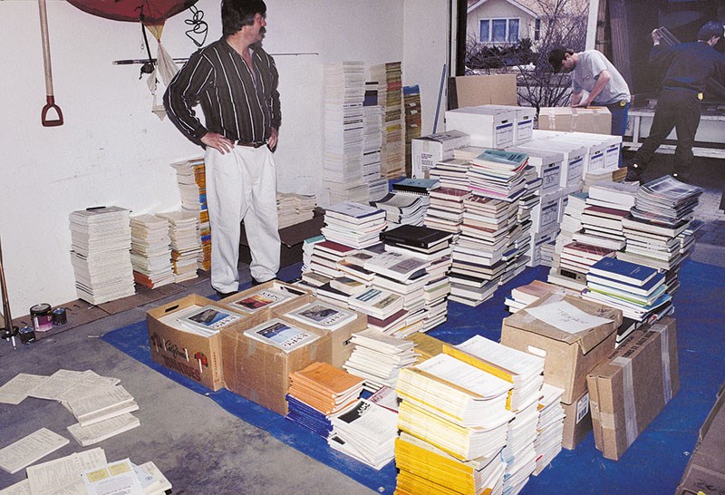 Koning's garage in Calgary became a temporary warehouse for the books bound for West Africa.
