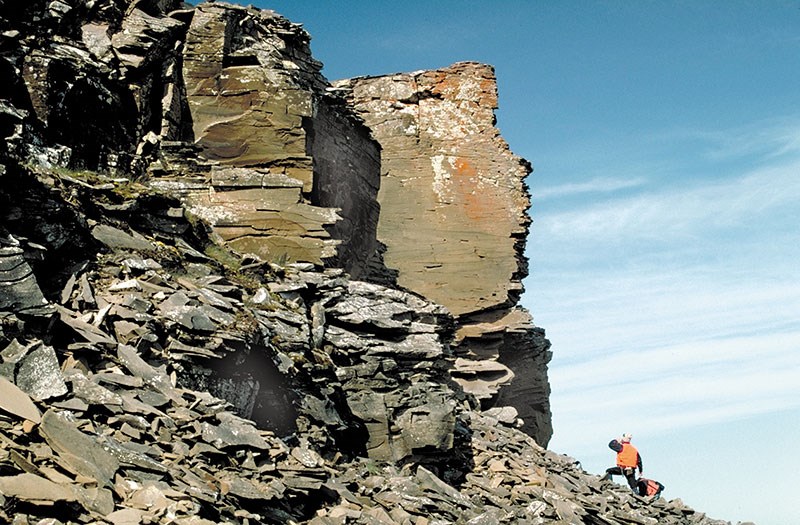 A sandstone bluff of Lower Cretaceous Nanushuk Formation on Poko Mountain, about 15 miles west of NPR-A.