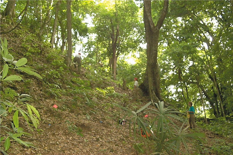 Listening for clues: Workers acquire seismic data over two Maya pyramids and an adjacent place at the Ma'ax Na and the Chan Chich archaeological sites located in the Rio Bravo Conservation and Management Area (RBCMA).