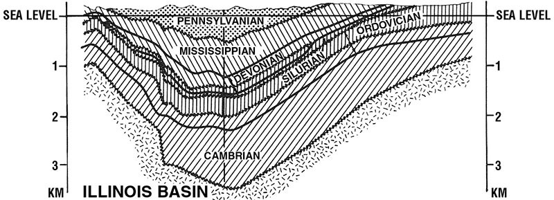 An Illinois Basin cross section (Leighton and Kolata) near Ceja's well, taken from AAPG Memoir 51, Interior Cratonic Basins.