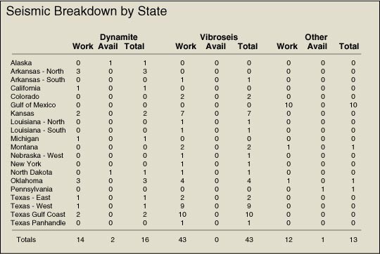 Table: Seismic Breakdown by State. Data for charts provided by IHS.