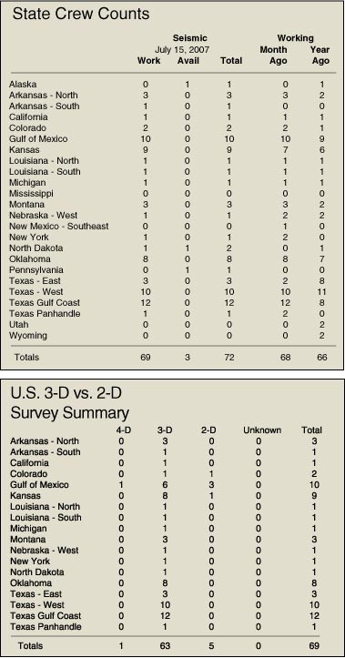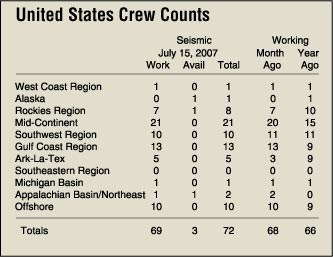 In fact, the July 15 issue of World Geophysical News (WGN) notes working crews on the global scale tally 277 compared to 260 one year ago.