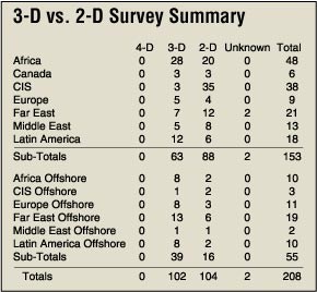 Table: 3-D vs. 2-D Survey Summary. Data for charts provided by IHS.