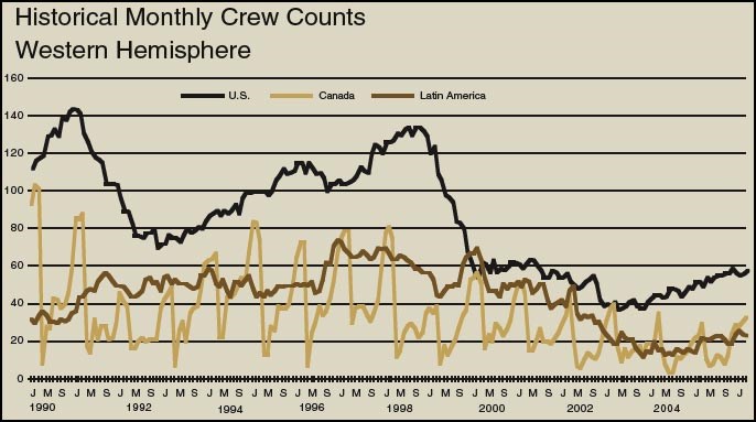 Crew Count: Western Hemisphere. Data for charts provided by IHS.
