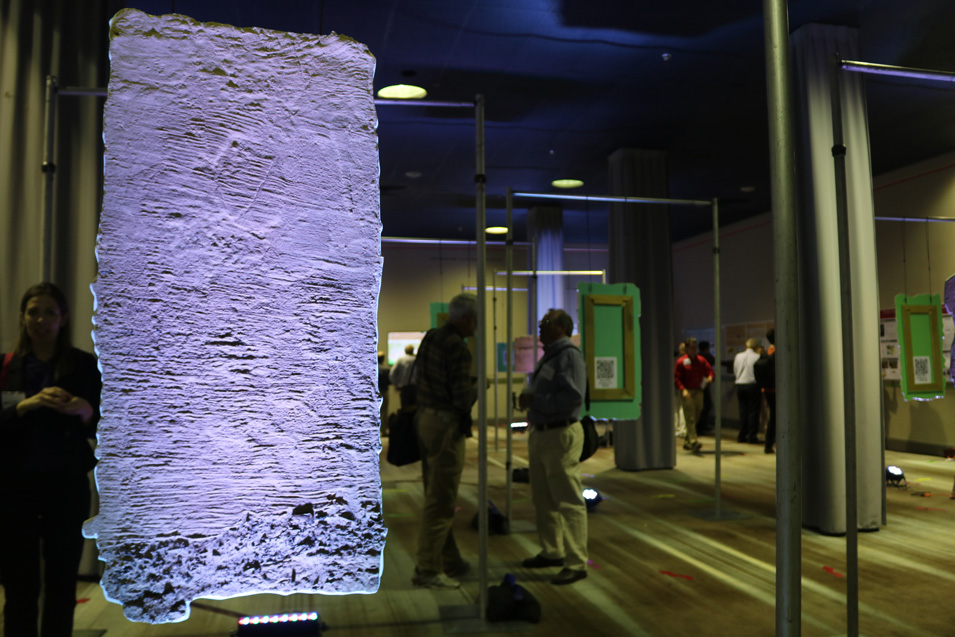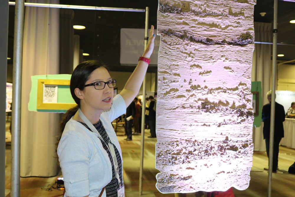 The show-stopper at the convention, to me, was a post-Harvey sand peel exhibit. It was a combination of geology and art. The sand peels were created from the deposits left by Hurricane Harvey in Buffalo Bayou. Thanks to Linda Sternbach, who was taking photos at the convention, for allowing me to use a couple of her photos.