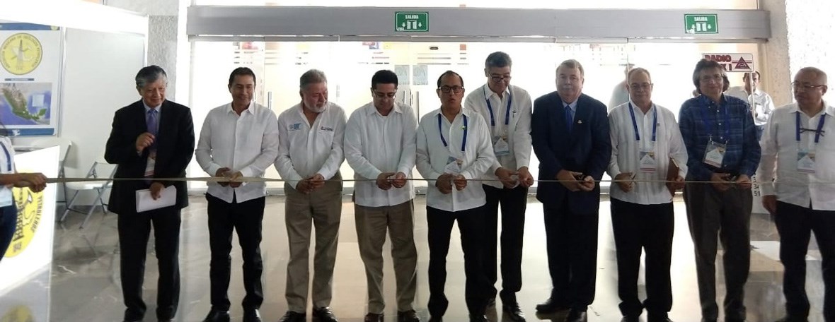 Cutting the ribbon to open the celebration of the 70th anniversary of the Asociacion Mexicana de Geologos Petroleros in Villahermosa, Mexico