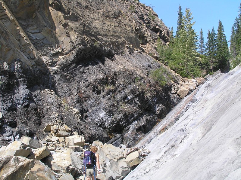 The Exshaw Shale, Alberta’s No. 1 source rock, outcropping in Jura Creek, Alberta