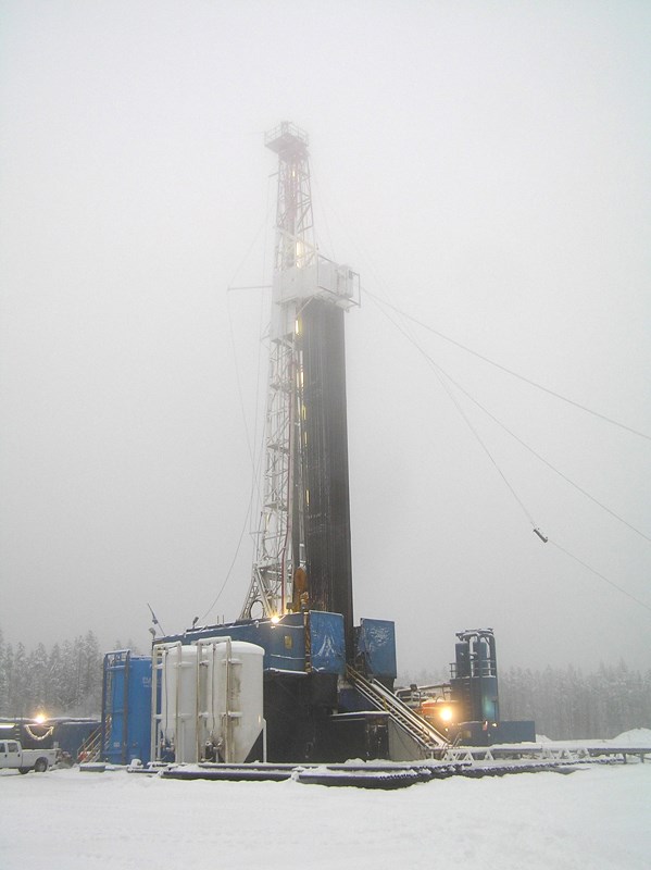 Rig drilling into the Nikanassin Formation, Hiding Creek, Alberta
