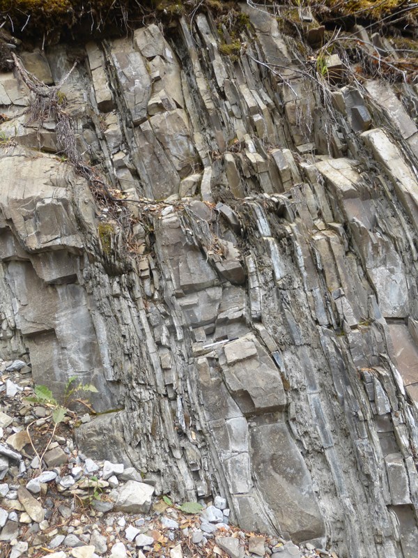 Undulating hummocky cross-stratification in the Sulphur Mountain Formation, outcropping equivalent to the subsurface Montney Formation