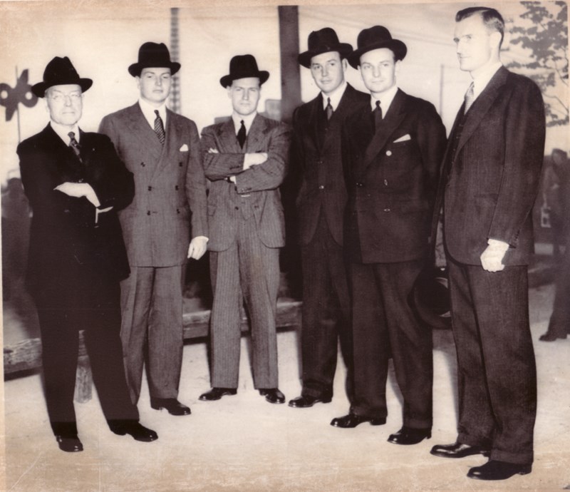 The Rockefeller family at the 1937 funeral of John D. Rockefeller (John D. Rockefeller Jr., and his sons David, Nelson, Winthrop, Laurence, and John D. III)